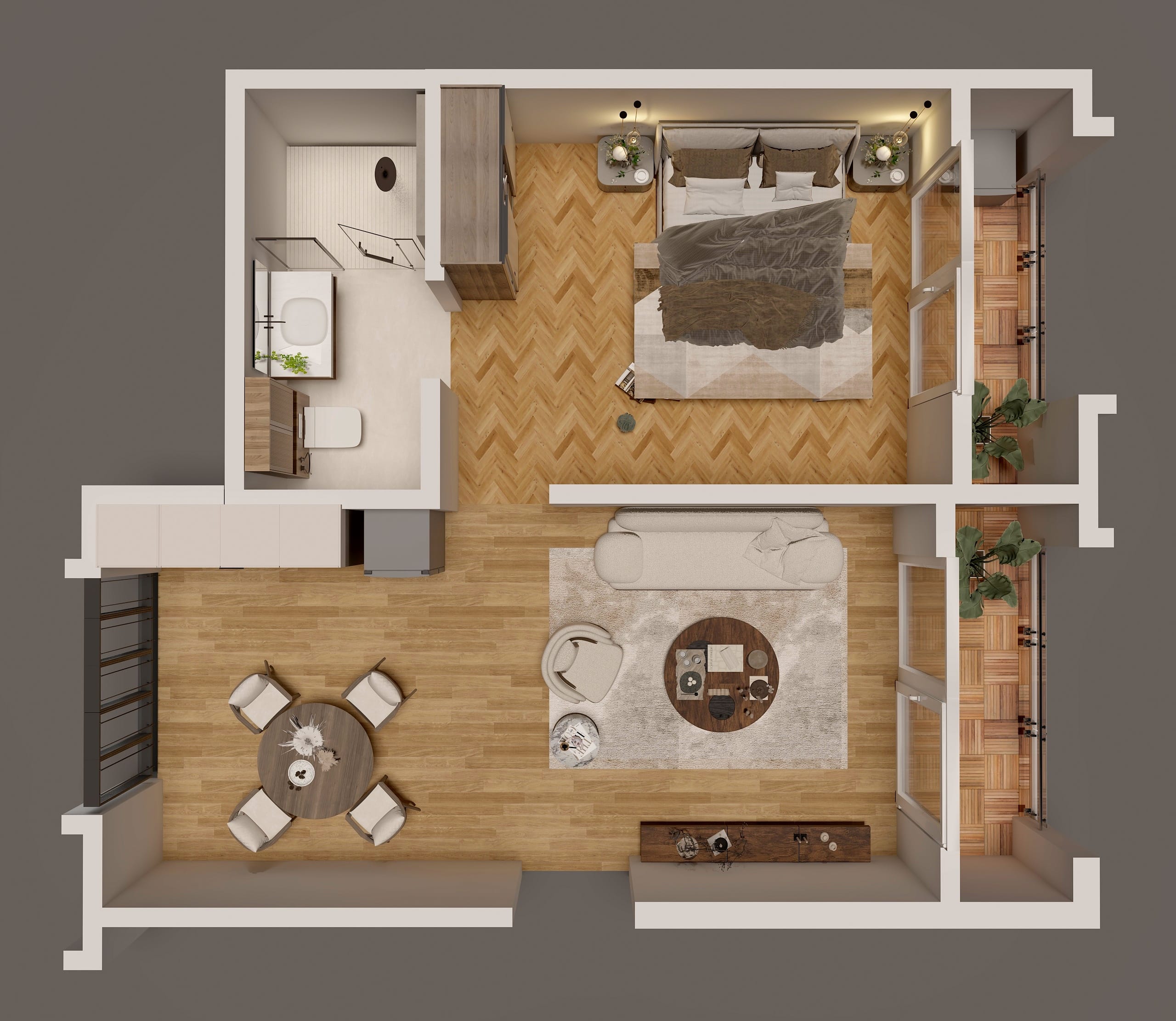 - Living Space: A “quiet heart of togetherness” featuring premium tile flooring and expansive windows that invite natural light.