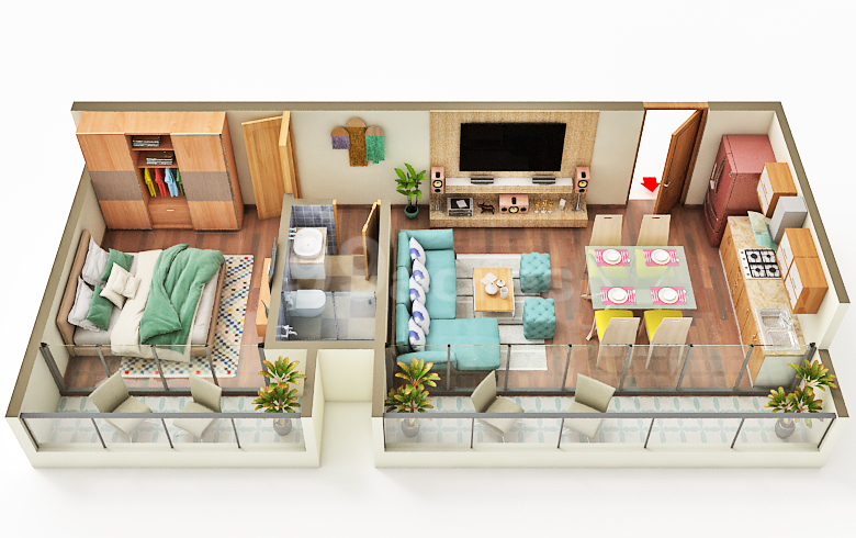 - Super Built-Up Area: 645.84 Sq. Ft..